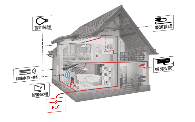 6. DuDu智能盒子通过470M GFSK技术(穿墙能力超强且传输距离理论值可达2公里)和OFDM PLC技术手段实现对智能开关、插座等模块的集中管理和控制。可以根据户型的实际大小增加DuDu空气盒子的数量,从而解决无线距离有限的问题。