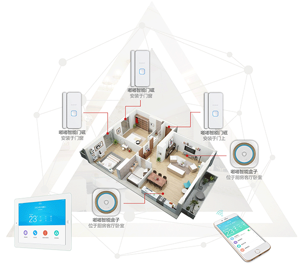 嘟嘟E家采用全球领先的物联网技术,通过自身强大的产品线和定制研发整合服务为用户提供智慧家庭全套解决方案。用户可通过手机、电脑、室内机设置和使用家电控制的功能,随时随地一健解决;同时,各个产品协同工作,实现家电、影音、灯光、门窗、安防、能耗、环境监测等智能交互,遇环境欠佳的情况,适时提醒用户,并联动新风系统及时改善家中环境,遇意外险情,则报警提示,及时处理危机。让您的家居环境更加智能、舒适、安全、便捷。